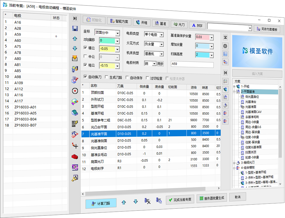 支持电极、模架等产品类型,快速提升CNC编程操作效率,标准化的刀库、程序单等可由用户自由配置。