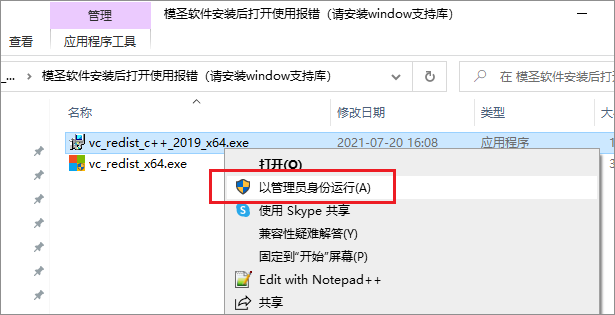 注:安装的时候请鼠标右键点击:以管理员身份运行(如下图)
